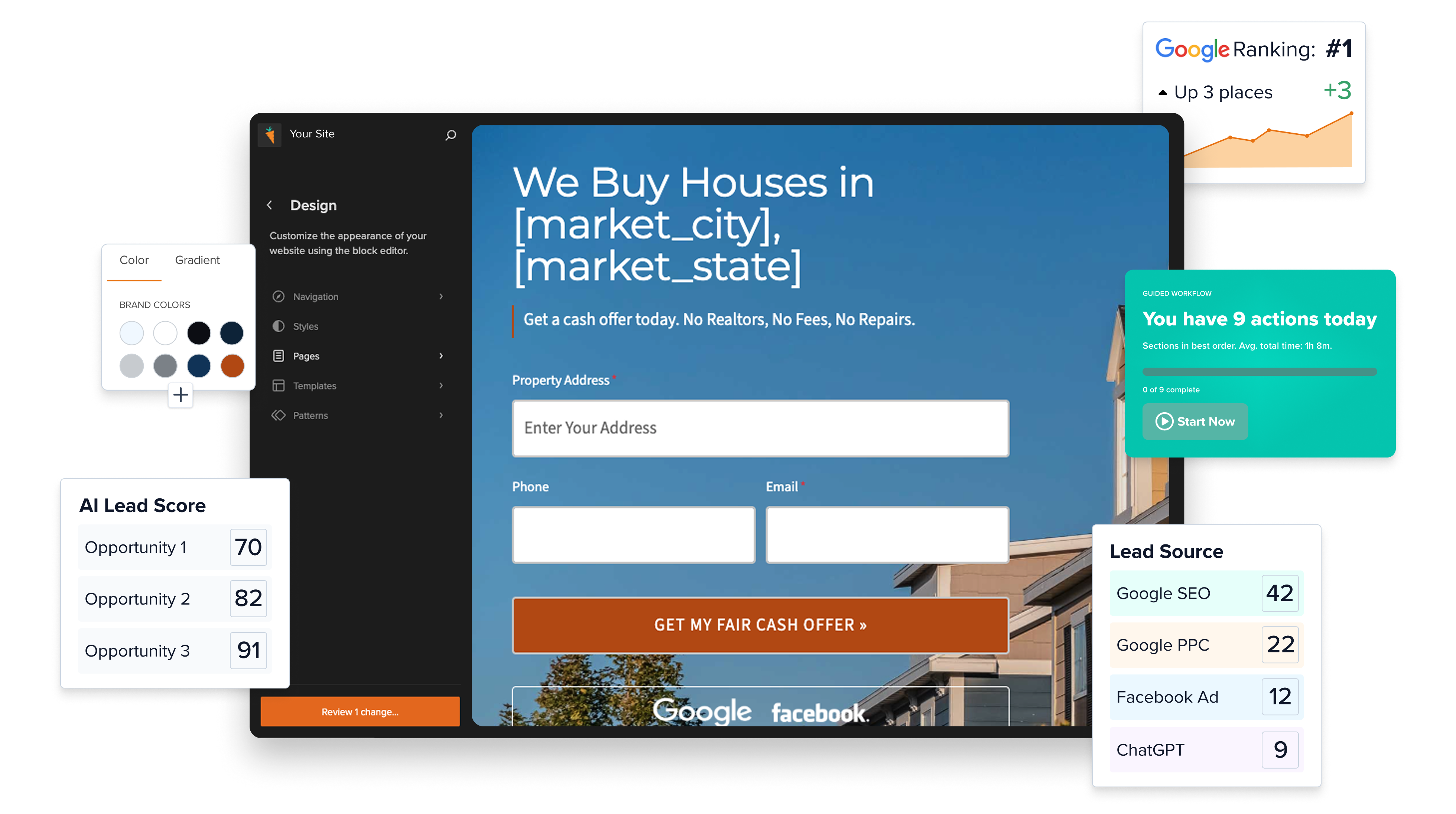 30%+ of the top Google rankings for motivated sellers are Carrot sites. Schema markup, site speed, content structure, location pages, all optimized before you hit publish.