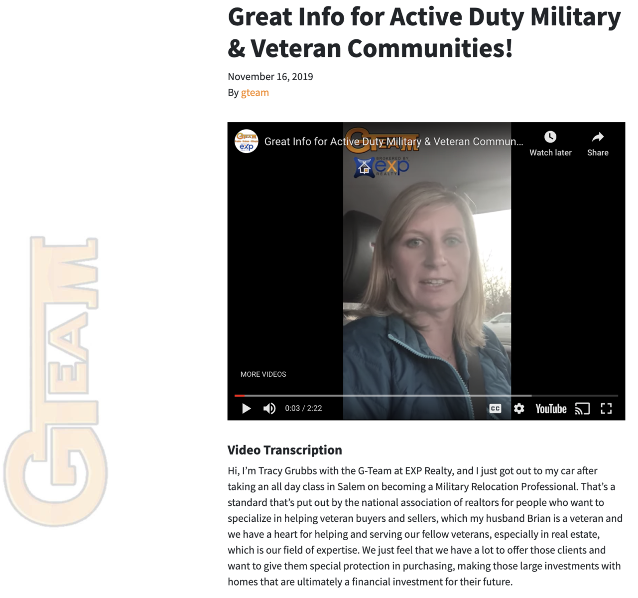 A local real estate agent here in Roseburg, the G Team, one of their niches, what we always tell people to do, especially in this market environment, is you need to pick something to specialize in. It could be multiple somethings.