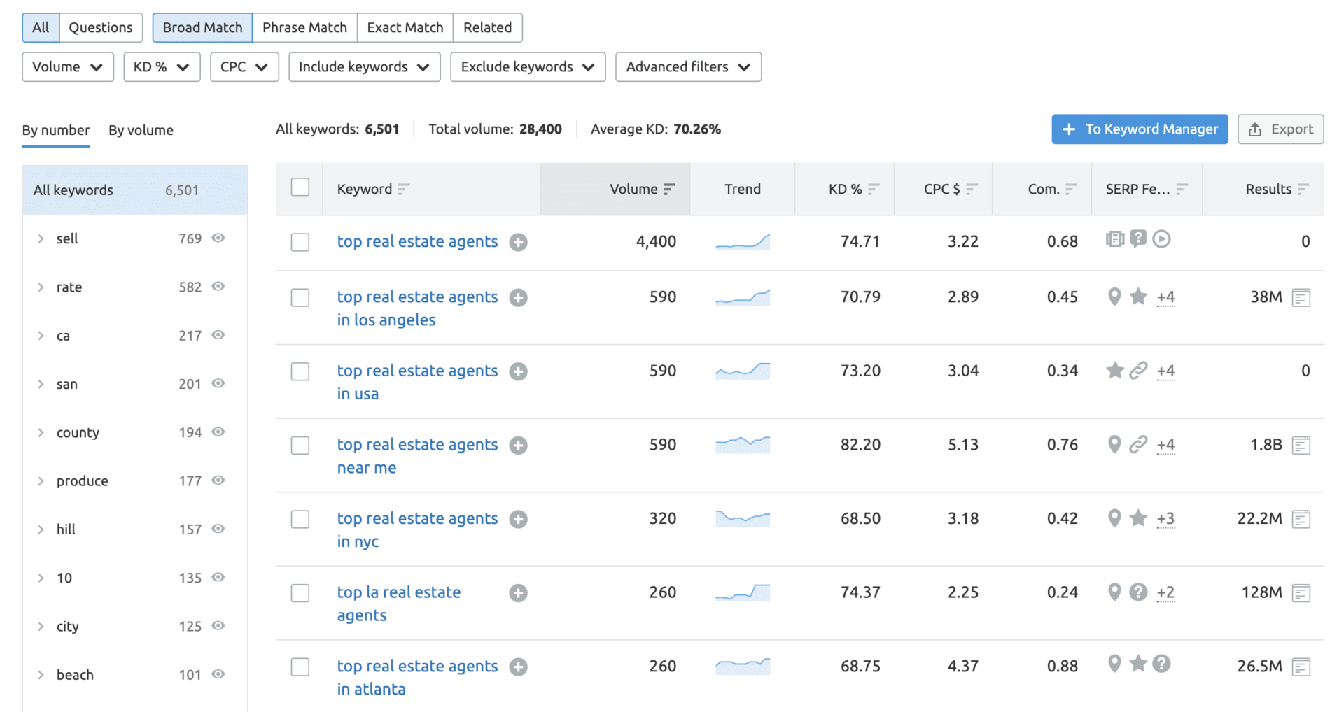 Start with your primary cities (those will be hard to outrank Zillow for since they’re so competitive) but then focus on the niches within the markets.