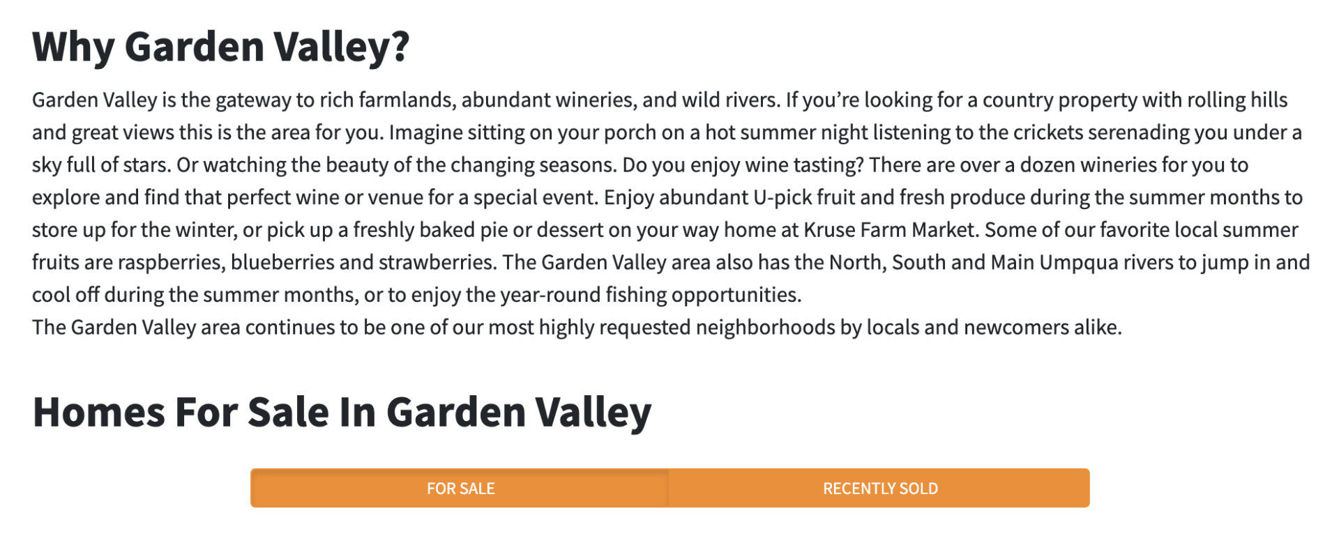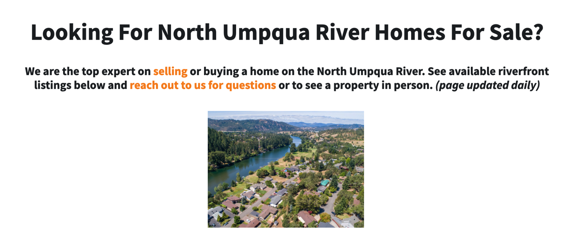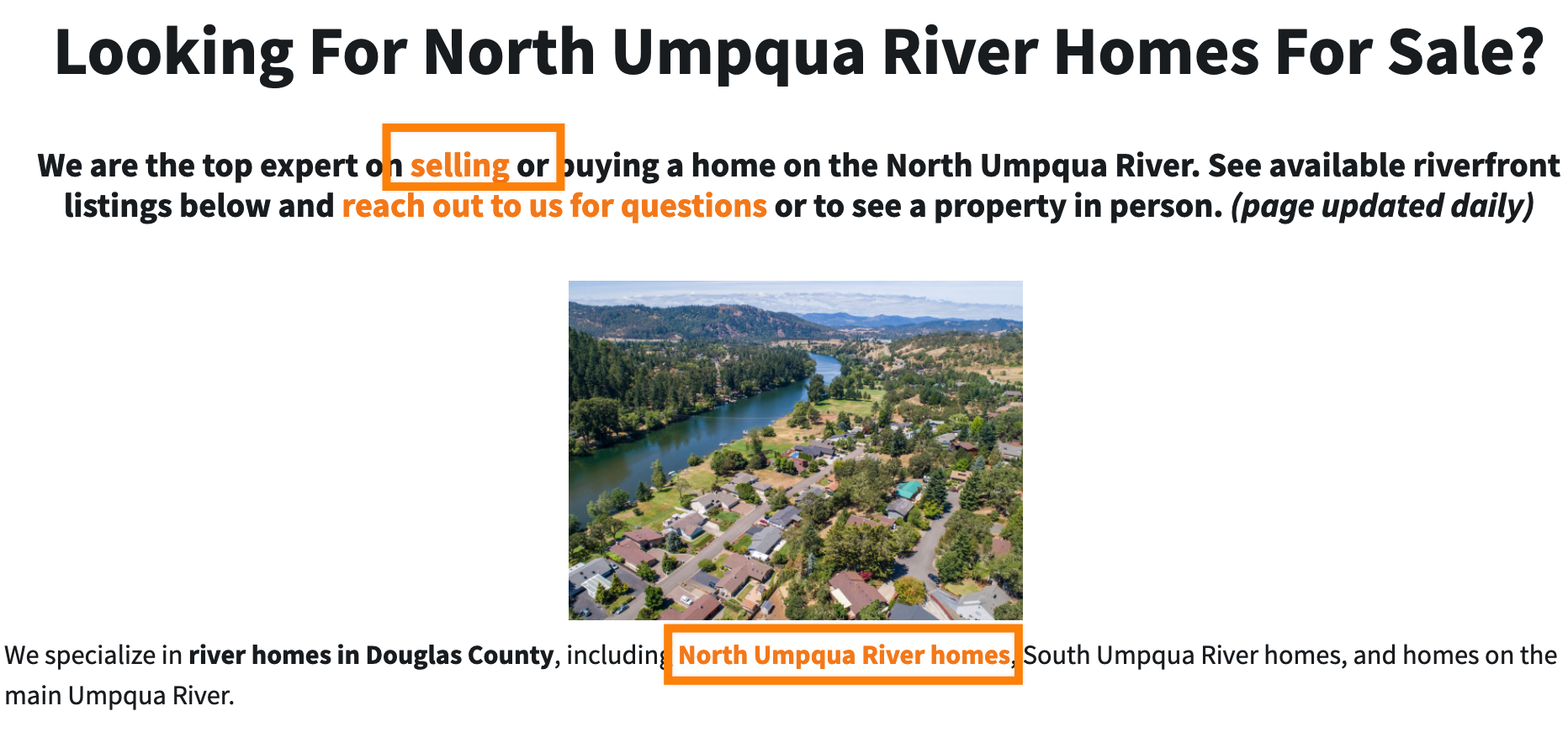 So you can see I titled it, “North Umpqua River homes for sale in Roseburg, Oregon.” That’s exactly what I’m trying to rank for.
