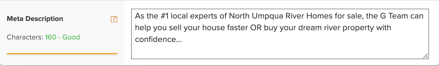 Basically, this website’s probably been up for five or six years. The URL has been, they switched over to Carrot about a year ago, and we said, okay, what are people looking for if they make that search, “North Umpqua River homes for sale.”