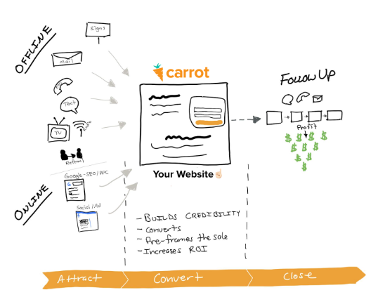 Moreover, before anyone makes a decision to contact you, they usually look you up online. A postcard might catch their attention, but the site is where they decide if you’re credible. A radio ad might spark curiosity, but the site is where they can actually reach out. Even when you cold call, many sellers will still Google you afterward before they consider working with you.