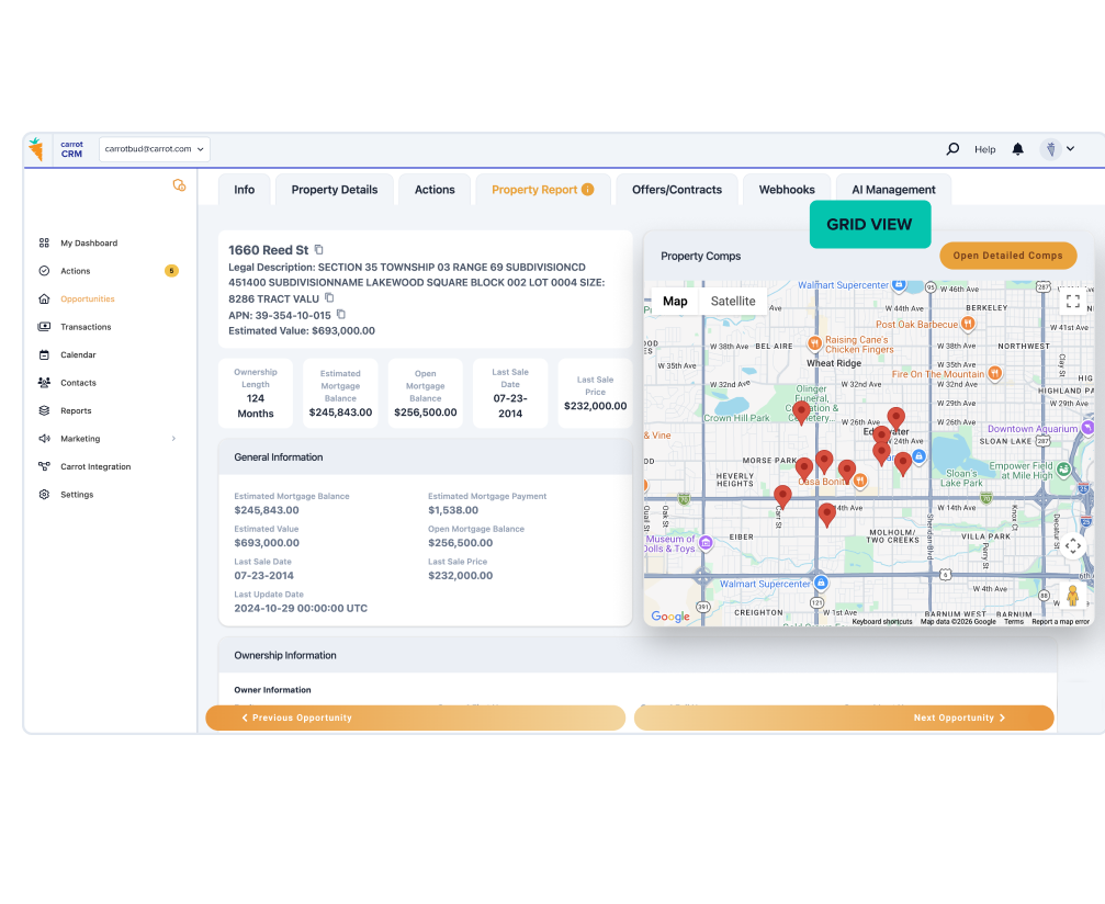 Stop wasting hours collecting property data from dozens of sources. Or worse … making a bad deal because you don’t understand nearby comps. CarrotCRM gives you the info you need on a single screen.