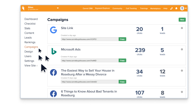 You should, or you’re wasting money. Paying for any marketing without knowing exactly how well it works is like throwing money into a black hole. Carrot’s campaign tracking helps you measure exactly where your best online and phone leads found you.