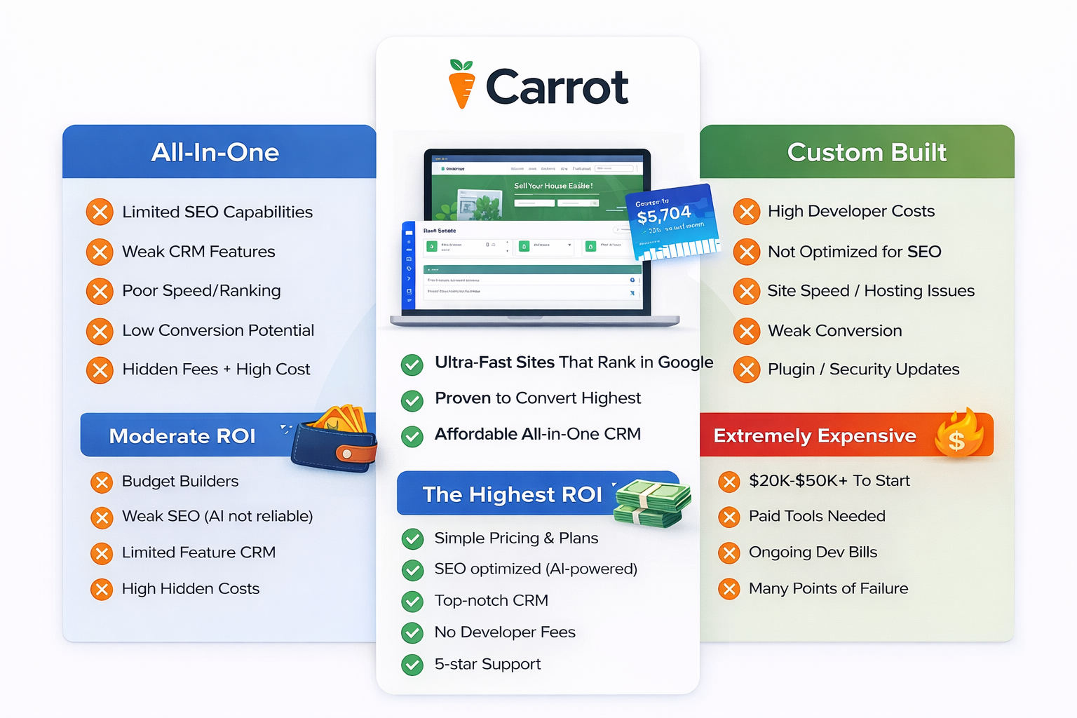 - Speed and trust that converts. Every second your site takes to load costs you leads. Carrot sites score 60% faster than custom WordPress… so visitors stay, trust builds, and more of them pick up the phone.